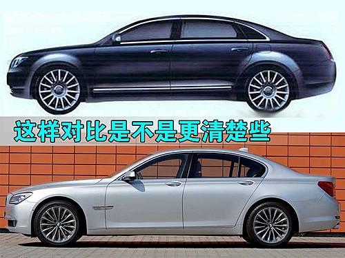 從側(cè)面看,能夠更直觀看出它與寶馬7系的相似度,同樣的車頂弧線、高腰線,甚至連多輻輪轂都相當(dāng)神似,不過(guò)寶馬所推崇的后窗內(nèi)旋弧度沒(méi)有被搬走。