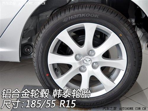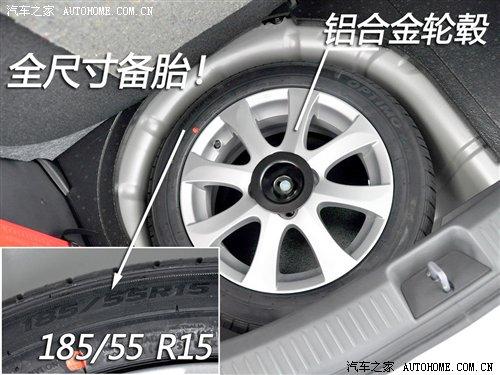 馬自達2(兩廂)全系共8種車型,最低配的標(biāo)準(zhǔn)型配備175/65 R14輪胎,鋼輪轂;其他車型都采用尺寸為185/55 R15的輪胎,鋁合金輪轂。馬自達2全系都裝備全尺寸備胎。例如我們實拍的這輛1.5手動超值版,材質(zhì)和規(guī)格和標(biāo)配的輪胎相同。