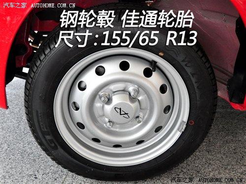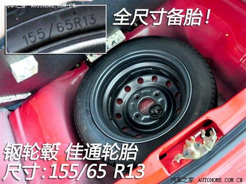 QQ3全系配備的輪胎尺寸為155/65 R13,品牌為佳通。這樣的尺寸在0.8車型上還算中規(guī)中矩,而1.1車型還配備這樣尺寸的輪胎在同級別中就顯得有點寒酸了。QQ3也有鋁合金輪轂可供選擇,我們實拍的這樣裝備的是鋼輪轂,備胎都屬于全尺寸的。