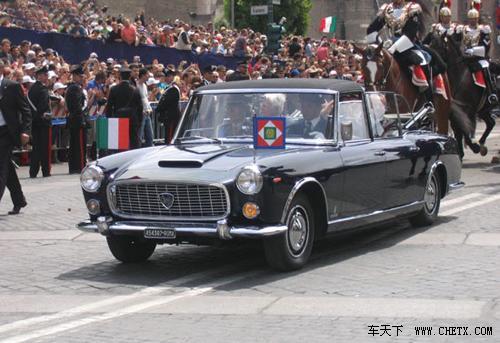 藍旗亞一直是意大利政府的官車,意大利總統(tǒng)、總理的座駕用的也是藍旗亞。而意大利現(xiàn)任總統(tǒng)的座駕便是一款1963年版的藍旗亞Flaminia。