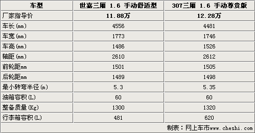 東風(fēng)雪鐵龍世嘉三廂1.6手動(dòng)舒適型和標(biāo)致307-1.6手動(dòng)舒適型都可以稱得上是該車款中的主力車型,兩款車型的定價(jià)相差了4000元整。在車身尺寸方面世嘉三廂車長(zhǎng)和車寬方面都要優(yōu)于標(biāo)致307尺寸。兩款車型的軸距均在2600mm左右,該尺寸在同級(jí)別車型中比較少見(jiàn),完全可以滿足一般乘客的使用需求。307的車身高度達(dá)到了1526mm,這一點(diǎn)保證了其內(nèi)部高度的寬敞。標(biāo)致307的行李箱容積達(dá)到了620升,可以稱上是海量了,而世嘉三廂僅達(dá)到了481升。標(biāo)致307的前后輪距都要大于世嘉三廂,意味著標(biāo)致307操控性要優(yōu)越于雪鐵龍世嘉。