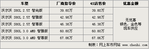 據(jù)4S店銷售人員介紹,目前國(guó)產(chǎn)沃爾沃S80有部分現(xiàn)車到店,有銀色、金色車身外觀可供消費(fèi)者挑選。目前國(guó)產(chǎn)加長(zhǎng)版尚未出現(xiàn)優(yōu)惠幅度。另?yè)?jù)銷售人員介紹,現(xiàn)售的加長(zhǎng)S80都是淺色內(nèi)飾,在8月份沃爾沃將推出黑色內(nèi)飾版,包含全系車型。黑內(nèi)飾版將為消費(fèi)者提供更豐富的購(gòu)車選擇。