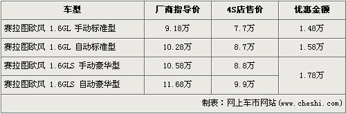 據(jù)經(jīng)銷商處銷售人員介紹,賽拉圖歐風全系最高出現(xiàn)1.78萬元的優(yōu)惠。賽拉圖歐風在售的有4個車型,入門級的1.6L手動標準版的優(yōu)惠金額上漲到了1.48萬元,售價從廠商指導(dǎo)價9.18萬元降到7.7萬元,1.6L豪華版的手動版和自動版車型都經(jīng)全系最高1.78萬元優(yōu)惠后,售價分別降至8.8萬元和9.9萬元。銷售人員還介紹,目前賽拉圖歐風車型比較緊張,現(xiàn)車數(shù)量一般。