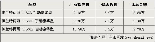據(jù)經(jīng)銷商處銷售人員介紹,目前購買伊蘭特兩廂的消費者還可以得到全系7.5折的優(yōu)惠,入門級車型售價已經(jīng)不足7萬元,消費者購車后必須在店內(nèi)做一條龍服務(wù)。伊蘭特兩廂先已停產(chǎn),現(xiàn)售的車型均為庫存車,并且多家經(jīng)銷店的伊蘭特兩廂庫存車已銷售完,所以很多4S店已經(jīng)不接受此車的預(yù)訂。欲購買此車需交訂金3000元約等一周可提車,若錯過這批庫存車,將不會再買到此車型。