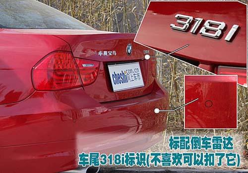 車尾兩側(cè)分別貼上了“華晨寶馬”和“318i”的字樣,為了駕駛者的泊車方便,這款車型還標(biāo)配了4探頭的泊車?yán)走_(dá)。