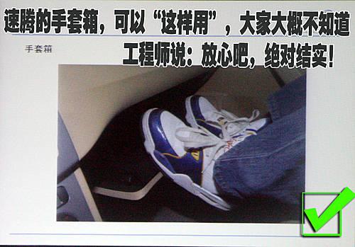 一汽大眾產(chǎn)品部工程師在演示這張照片的時(shí)候令在場媒體記者很吃驚,扶手箱打開后竟然可以當(dāng)作副駕駛乘員的歇腳板。而且一汽大眾產(chǎn)品部工程師還告訴我們,“盡管放心的去用吧,它足夠結(jié)實(shí)!”。