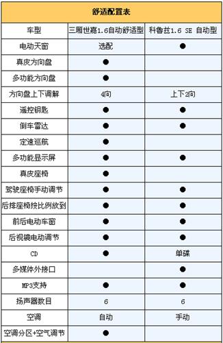 對(duì)比車(chē)型:三廂世嘉1.6自動(dòng)舒適型