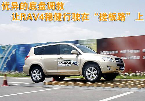 RAV4城市休閑SUV優(yōu)異的底盤(pán)調(diào)教,使其行駛在模擬“搓板路”上時(shí),車(chē)內(nèi)駕乘人員感覺(jué)車(chē)兩依然平穩(wěn)舒適。似乎整個(gè)RAV4車(chē)身懸浮在底盤(pán)之上,之間前后懸架在上下調(diào)節(jié)從而適應(yīng)路面狀況。