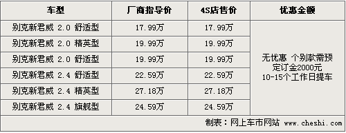 據(jù)4S店銷售人員介紹,目前新君威全系還沒有優(yōu)惠出現(xiàn),各經(jīng)銷商處有一部分現(xiàn)車已經(jīng)到店。而熱銷的紅色款車型仍然是訂單制銷售。目前可選的現(xiàn)車顏色有金色、灰色等款。消費(fèi)者如果訂車的話,需要交2000元訂金,在10-15個(gè)工作日內(nèi)便可以交車。