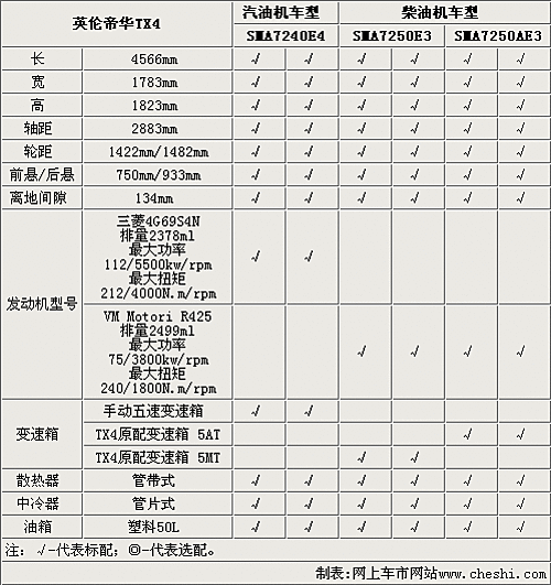 英倫TX4的長寬高分別是4566/1783/1823毫米,雖然是一款A(yù)級車的外形尺寸,但這款車的軸距為2883毫米,達(dá)到了一款B級車的水平。TX4分為汽油版和柴油版,汽油版搭載三菱4G69系列發(fā)動機,而柴油版搭載大眾的R425柴油發(fā)動機。從動力數(shù)據(jù)方面來看,柴油版擁有低速高扭的特點,而汽油版的最大功率達(dá)到112千瓦,而且具有很好的經(jīng)濟(jì)性。TX4汽油版匹配手動五速變速箱,而柴油版卻可以匹配原裝的五速自動變速箱。