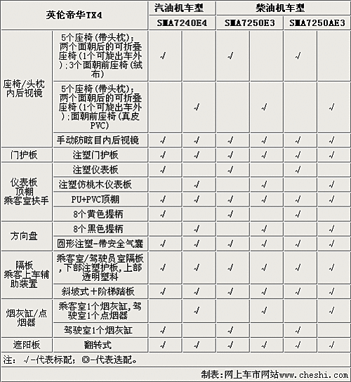 英倫TX4的乘客室有五個乘客,有兩個面朝后的可折疊座椅,1個可旋出車外;3個面朝前座椅,低配車型采用絨布座椅,高配車型采用真皮材質(zhì)。防眩目內(nèi)后視鏡采用手動調(diào)節(jié),內(nèi)飾及車門護(hù)板都采用塑料材質(zhì)。另外,這款新車配備了斜坡式和階梯式踏板,方便特殊乘客進(jìn)出車輛。