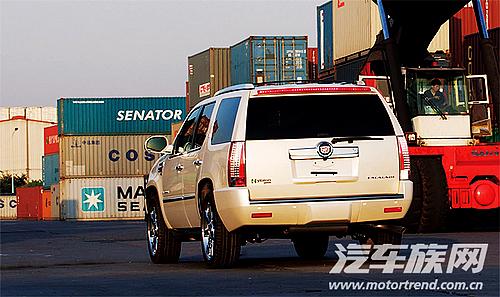 從貨場(chǎng)駛出,一路上被大貨車壓壞的路面坑坑洼洼,這時(shí)MRC主動(dòng)電磁感應(yīng)懸架自動(dòng)調(diào)節(jié)阻尼,高大的車身在顛簸路面上快速前進(jìn),而乘客感到的僅僅是輕微晃動(dòng)。駛離港區(qū),眼前出現(xiàn)筆直的高架公路,輕點(diǎn)油門,車速很快提高到100公里/小時(shí)。這時(shí)從具有AudioPilot噪音補(bǔ)償技術(shù)的Bose音響中流出的音樂(lè)依然保持純凈,并未因?qū)挻蟮能嚿砗?85寬胎所產(chǎn)生的些許噪音而受到影響。此外,可能是靈敏的懸架已經(jīng)自動(dòng)調(diào)高阻尼,美國(guó)車特有的忽忽悠悠的如坐船般的感覺(jué)卻并沒(méi)有出現(xiàn)在我們的凱雷德身上。
