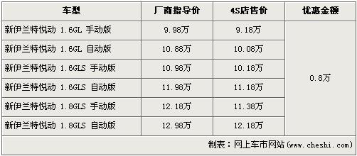 據北京現代經銷商處銷售人員介紹,新伊蘭特悅動全系車型優(yōu)惠8000元,經優(yōu)惠后全系入門級的1.6L GL手動版的售價為9.18萬元,是全系的最低價格。銷售人員還介紹,1.6L車型現車充足,而1.8L車型店內現車有限顏色不全,欲購買無現車的1.8L車型消費者需交納3000元現金,等一周后可提車。