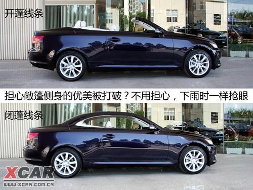 敞篷車需要什么呢?強(qiáng)悍的動(dòng)力?精準(zhǔn)的操控?NONONO!都不是,敞篷車需要的是拉風(fēng),本身開(kāi)敞篷車就是對(duì)精神的追求,一種自然、愜意的追求。當(dāng)然,不錯(cuò)的運(yùn)動(dòng)性會(huì)讓敞篷車更加出彩,但是實(shí)拍文章無(wú)法完成對(duì)后者的了解,那就從“臉蛋兒”上看看IS300C夠不夠格兒吧。