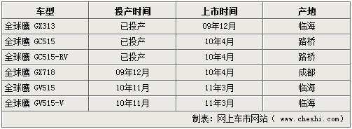 吉利汽車在細化品牌之后便將重心轉(zhuǎn)移到了新車的推出計劃上。旗下的全球鷹品牌整體規(guī)劃也漸漸浮出水面,記者由吉利方面獲悉,未來三年內(nèi)全球鷹品牌將陸續(xù)投產(chǎn)并上市6款不同級別的新車,足見吉利汽車對全球鷹品牌的重視。具體投產(chǎn)計劃如下: