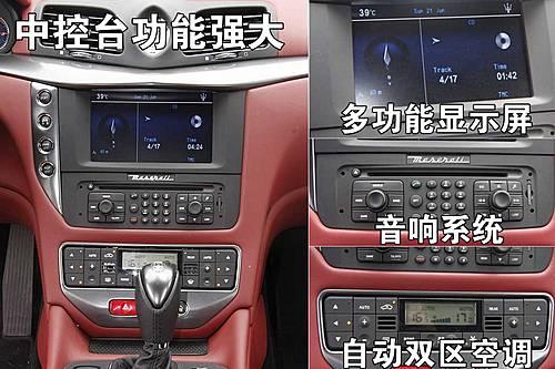 瑪莎拉蒂GranTurismo的中控臺(tái)功能很豐富,DVD中央顯示屏、bose音響系統(tǒng)、自動(dòng)雙區(qū)空調(diào),為您締造一個(gè)舒適乘坐空間。