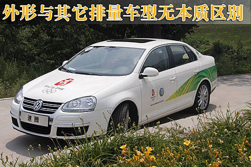 從外觀上來(lái)看1.4TSI速騰車(chē)型與目前市場(chǎng)上銷(xiāo)售的1.8T、1.6以及2.0車(chē)型基本一致,車(chē)輛的尺寸也沒(méi)有明顯的變化,而因?yàn)樵?jīng)是08奧運(yùn)綠色車(chē)隊(duì)的成員,因此該車(chē)的外觀貼有相應(yīng)的貼紙,更加凸顯了這款車(chē)型的與眾不同。