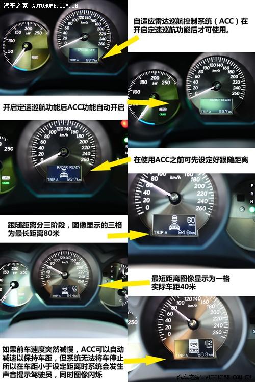 當(dāng)然,這個(gè)距離也可以在ACC開(kāi)始工作以后再做調(diào)整,編輯在北京的北四環(huán)上試了試這個(gè)功能,只要該功能處于工作狀態(tài),車頭雷達(dá)是一支捕捉前方車輛并與其保持設(shè)定距離。如果前方車輛駛離原車道,雷達(dá)便會(huì)捕捉更靠前一輛車,并提速至定速巡航設(shè)定的最高速度以便盡快使車輛與前車保持設(shè)定距離。如果前車緩慢減速,系統(tǒng)會(huì)自動(dòng)給車輛減速保持車距,但該系統(tǒng)是無(wú)法將車輛完全剎停的,當(dāng)雷達(dá)發(fā)現(xiàn)與前車距離小于設(shè)定距離,且自動(dòng)減速的效果不好的時(shí)候便會(huì)發(fā)出警告音提示駕駛員采取措施,同時(shí),中央顯示屏上的圖像開(kāi)始閃爍。