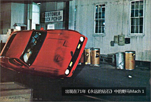 個(gè)人感覺(jué)相比64、65年的敞篷野馬,71年的《永遠(yuǎn)的鉆石》中福特野馬Mach 1讓人印象更加深刻。在逃脫以后,邦德在拉斯維加斯上了Tiffany Case的這輛車;他用它來(lái)逃脫拉斯維加斯警察的追捕(除了拉斯維加斯警察局的車為1970年產(chǎn)福特之外,其他警車,包括安全部隊(duì)的車都是1971年產(chǎn)福特Custom 500。)此外,Mach 1甚至還出現(xiàn)在了1973年的蝙蝠俠漫畫(huà)中。
