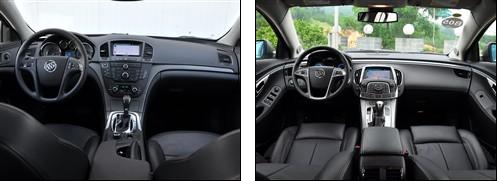 兩款車型內(nèi)飾均有黑色版本,左為新君威,右為新君越