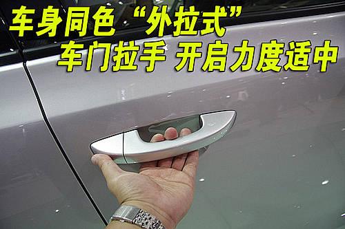車門內(nèi)側(cè)拉手采用鍍鉻設(shè)計(jì),金屬感比較強(qiáng)烈。雖然拉手周圍由塑料制成,但是拉手周圍的做工都很精細(xì)。