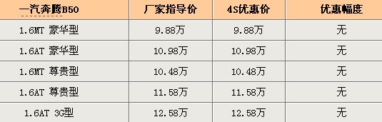 品牌看點:對于一款馬自達和德國大眾技術融合的車型,B50與B70的開發(fā)模式一樣,首先在產品的核心技術上先安下“放心丸”,而且9.88萬元-12.58萬元定價可以說是覆蓋了市場上主流1.6L中級車的價格范圍,奠定了產品的競爭力基礎?梢哉fB50的上市解決了奔騰品牌僅一款B70車型獨打的局面,目前,奔騰B70月銷5000輛成績幾乎于老馬自達6不分上下。B50的上市后對B70在1.6L市場的缺失將帶來彌補作用。