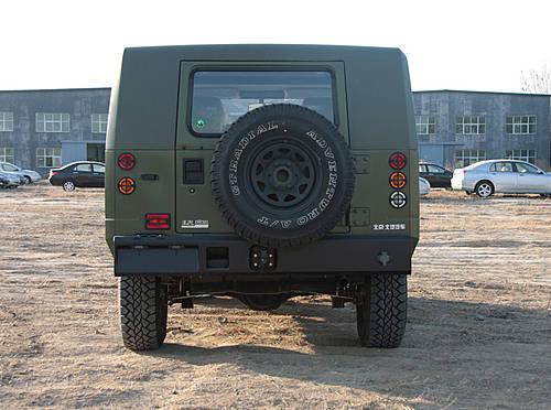 其外形設(shè)計(jì)的目標(biāo)原則是強(qiáng)調(diào)在繼承中發(fā)展的思路,實(shí)現(xiàn)突破創(chuàng)新和現(xiàn)代感的全新造型;強(qiáng)調(diào)具有中國(guó)文化底蘊(yùn),不與國(guó)內(nèi)、國(guó)外車型雷同;在保持傳統(tǒng)特色的同時(shí),來強(qiáng)化現(xiàn)代感。其以粗獷、簡(jiǎn)潔、威武的造型,展現(xiàn)了我軍威武之師、現(xiàn)代軍隊(duì)的風(fēng)貌和現(xiàn)代“硬派”越野車的風(fēng)格。外形個(gè)性鮮明,車身外觀緊湊而流暢,前臉造型模仿狼眼外眼角上揚(yáng)、怒視前方的表情,與前保險(xiǎn)杠融為一體的狼牙造型,將野性、威猛的氣勢(shì)演繹得淋漓盡致。篷頂后部稍向下沿伸,恰似豹子起跑前的后坐姿勢(shì),突出了整車的動(dòng)感與強(qiáng)悍。