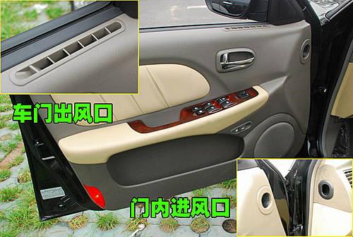 前排駕駛座車門拉手上方特別配備了一拍出風口,同時門內側兩處圓形的通風口打開車門時顯而易見,這樣的設計在老款車型上同樣可以看到。