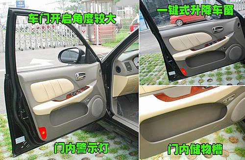 名馭的前排車門開啟角度比較大,這樣上下車都非常方便,同時車門下方配備了比較實用的警示燈,這樣在夜晚開門時保證了安全性。門內的儲物槽也非常實用,一鍵式升降車窗為這款車的標準配置。