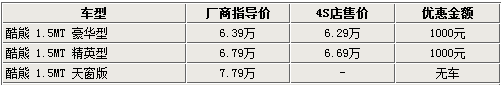 據(jù)長(zhǎng)城汽車4S店銷售人員介紹,長(zhǎng)城酷熊豪華型和精英型都已經(jīng)有大部分顏色的現(xiàn)車到店,消費(fèi)者可以到店提現(xiàn)車。但酷熊天窗版由于廠家并沒有投產(chǎn),導(dǎo)致沒有現(xiàn)車,而且也不能接受預(yù)訂。另外,銷售人員表示,目前購(gòu)買酷熊車型可給出千元的現(xiàn)金優(yōu)惠,對(duì)于消費(fèi)者而言無疑是一個(gè)好消息。