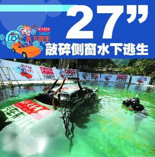 由《北京青年報(bào)》舉辦的"車(chē)輛落水逃生試驗(yàn)"上周在懷柔雁棲景區(qū)的巴克公社進(jìn)行。試驗(yàn)分三段進(jìn)行,在車(chē)輛落水后,分別驗(yàn)證了推開(kāi)車(chē)門(mén)逃生、砸破側(cè)窗逃生和砸碎前風(fēng)擋逃生。試驗(yàn)結(jié)果顯示,車(chē)輛落水后保持鎮(zhèn)定、積極措施自救,是成功逃生的保證。推開(kāi)車(chē)門(mén)逃生是最直接、快速的自救方法。