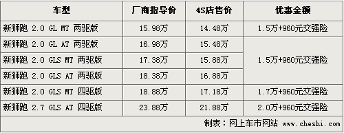 據(jù)4S店銷售人員介紹,目前購買獅跑可以贈送960元的交強(qiáng)險,同時有1.5萬-2萬元不等的現(xiàn)金優(yōu)惠。兩驅(qū)標(biāo)準(zhǔn)版優(yōu)惠后售價僅為14.48萬元。目前經(jīng)銷商處有黑色、銀色等現(xiàn)車供應(yīng),藍(lán)色等款需要預(yù)定,訂金為2千元,月內(nèi)便可以順利提車。