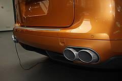 21英寸SportPlus合金車輪以及由四個(gè)鑄鋁尾管構(gòu)成的運(yùn)動(dòng)型排氣系統(tǒng),成為保時(shí)捷卡宴Turbo S的標(biāo)志性裝備。此外,其前橋陶瓷制動(dòng)盤直徑為410 mm,后橋制動(dòng)盤直徑為370 mm,制動(dòng)作用力通過前橋的六活塞卡鉗和后橋的四活塞卡鉗實(shí)現(xiàn)。