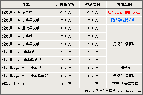 據(jù)斯巴魯北京地區(qū)4S店銷售人員介紹:新款力獅已經(jīng)到店,目前全部為2.0i豪華版及Wagon豪華版,2.0i現(xiàn)車比較充足,顏色有藍色、白色、銀色、黑色、灰色可選。另外還提供了2.0i導(dǎo)航版為試駕車,而老款力獅還有少量庫存車,現(xiàn)優(yōu)惠3萬元。