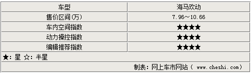 “動(dòng)感外形”、“靈動(dòng)操控”、“德系品質(zhì)”是海馬歡動(dòng)最為突出的三大賣點(diǎn),從用戶的體驗(yàn)角度,被形象地概括為“三好”:好看、好開、好用,因此歡動(dòng)又被稱為“三好轎車”。海馬歡動(dòng)搭載海馬自主研發(fā)的HA-VIS-1.8Ⅱ型高效能發(fā)動(dòng)機(jī),不但動(dòng)力強(qiáng)勁,而且燃油經(jīng)濟(jì)性出色。它是國內(nèi)A級(jí)兩廂車中首款搭載了CVT的車型,其CVT無級(jí)變速器較之傳統(tǒng)液壓助力式AT自動(dòng)變速器技術(shù)更先進(jìn),換檔極為平順,不但能帶來毫無頓挫感的操控享受,還能為歡動(dòng)帶來15%的節(jié)油提高。同時(shí)這款CVT還帶有6速手動(dòng)模式,可以為追求駕駛樂趣的消費(fèi)者帶來強(qiáng)烈的操控快感。