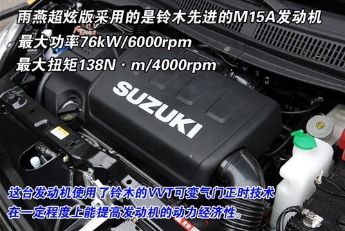 售價(jià)達(dá)到9.88萬(wàn)元的1.5炫酷版AT在強(qiáng)調(diào)性價(jià)比的雨燕全系中是頂配車(chē)型,因此勢(shì)必要配備一些豪華型配置。諸如全車(chē)六安全氣囊、多功能方向盤(pán)以及自動(dòng)空調(diào)都是小型車(chē)中少有的。而此車(chē)型搭載的1.5L發(fā)動(dòng)機(jī)更是值得推薦。這臺(tái)M15A發(fā)動(dòng)機(jī)是雨燕上市一段時(shí)間后才追加的動(dòng)力單元,目的就是提高雨燕的動(dòng)力表現(xiàn)。1.5L發(fā)動(dòng)機(jī)采用了全鋁材質(zhì)重量更輕,同時(shí)配有VVT可變氣門(mén)正時(shí)系統(tǒng),在燃油經(jīng)濟(jì)性方面也得到了提升。