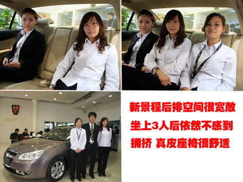 我們同樣又選擇了3名身高為165cm-170cm的美女,分別坐在新款景程的后排,來感受后排橫向空間的表現(xiàn)。看他們的笑容就可知道后排空間還是很令他們滿意的,的確表現(xiàn)也是如此。新款景程1807mm的車寬保證了車內(nèi)橫向空間,于“標(biāo)準(zhǔn)身材”的它不謀而合。