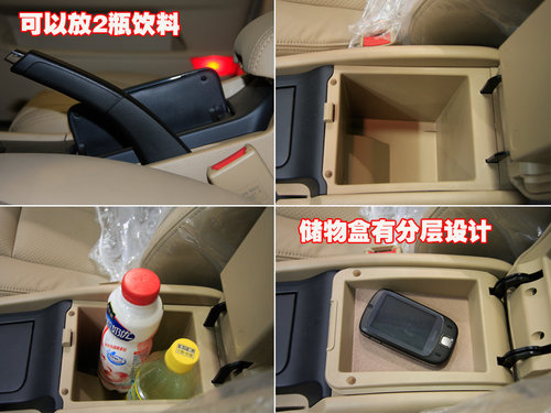 本以為多變的中央扶手處可以彌補(bǔ)較小的手套箱空間,結(jié)果仍舊讓我們失望。不過(guò)值得一提的是,新景程中央儲(chǔ)物盒采用分層設(shè)計(jì),這樣的設(shè)計(jì)還是很能打動(dòng)人的,放個(gè)手機(jī)很輕松。