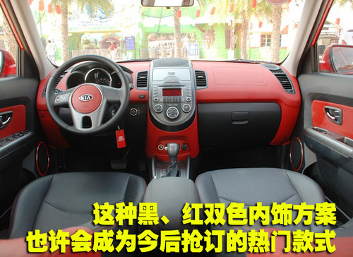 在方向盤也就是駕駛者的周圍分布著很多按鈕,不過別擔心,再生疏的駕駛者也不會因為這些按鈕或是功能而手忙腳亂,因為設計師早已經(jīng)為您的日常使用考慮的很周到了。位于儀表臺左側的三炮筒式儀表盤設計還算時尚,但是儀表盤的功能并沒有太多新鮮元素的注入,這一點也是因為成本的考慮而不得不落入俗套。中控臺左側下方是控制大燈高度的調(diào)節(jié)按鈕,右側的控制鈕是SOUL的最大特點,即控制前車門揚聲器發(fā)光的開關,它可以跟隨音樂節(jié)奏變換紅色燈光的閃爍,如同將迪廳的燈光帶入了車內(nèi)。