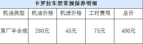 同樣,這臺發(fā)動機在國內(nèi)服役時間也比較長了,理論上保養(yǎng)費用應該不會太高。而通過調(diào)查,卡羅拉每5000公里進行一次機油保養(yǎng)的400元,相比同級車來說算是比較高的,同時卡羅拉享受一次免費的機油機濾的保養(yǎng)。