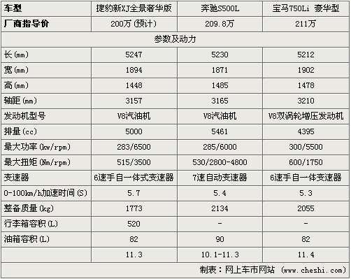 在動力上,三款車都搭載是V8汽油機(jī),不過寶馬750Li配置的是雙渦輪增壓,因此在功率、扭矩上優(yōu)勢相當(dāng)明顯,相比來說捷豹新XJ要遜色一些,不過捷豹也有5.0L增壓發(fā)動機(jī)只是前期暫不引入。在變速器方面,捷豹新XJ和寶馬750Li都配置是6速手自一體變速器,而奔馳S500L則配置是7速變速器。在加速性能上,配置v8雙渦輪發(fā)動機(jī)750Li優(yōu)勢突出,0-100Km/h加速僅需5.3秒,不過三款車都在6秒以內(nèi),對于這樣的長軸距車型來說已經(jīng)不錯了。