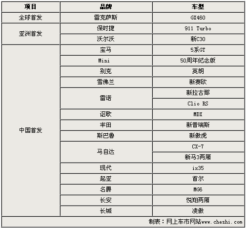 2009廣州車展已于今日正式開幕,本屆車展將有德系、美系、日系、韓系以及自主品牌等共計(jì)27款新車集中上市發(fā)布。這其中不僅包括全球首發(fā)車型雷克薩斯GX460,而且還有保時(shí)捷911 Turbo和寶馬5系GT等多款亞洲和國內(nèi)首發(fā)車型。通過以下的詳實(shí)解析,讓我們一睹它們到底具備怎樣的風(fēng)采。