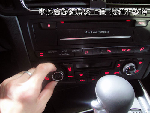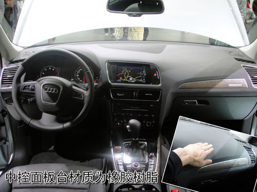 奧迪Q5儀表臺的整體感覺與奧迪家族的其它車型高度統(tǒng)一,略向駕駛員一側偏轉(zhuǎn)的儀表臺照顧到了駕駛員在駕車當中的操作便捷性。與奧迪家族跑車相同的儀表盤布局增添了奧迪Q5的運動氣息。中控臺大量使用橡膠樹脂材質(zhì),手感較硬。