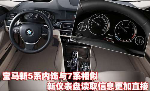 寶馬新5系的內(nèi)飾與7系有些相似,新款儀表盤讓駕駛員讀取信息更加直接。而第四代寶馬iDrive系統(tǒng)和6速電子手自一體變速箱,也均成為寶馬新5系的標準配置。