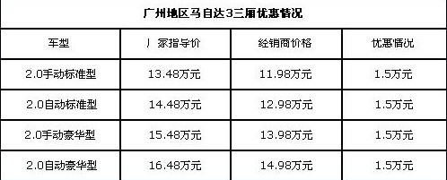 1、馬自達(dá)3三廂最高優(yōu)惠1.5萬