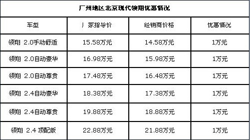 筆者從廣州北京現(xiàn)代4S店獲悉,近期領(lǐng)翔車(chē)型能有10000元的現(xiàn)金優(yōu)惠,不過(guò)經(jīng)銷(xiāo)商處的現(xiàn)車(chē)都不多,大多數(shù)車(chē)型都需要預(yù)訂,訂車(chē)周期預(yù)計(jì)要15-20個(gè)工作日。