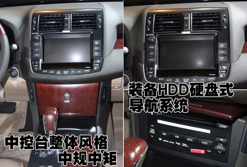 新皇冠的中控臺按鈕的設(shè)計(jì)均勻的布局在顯示屏四周,下方為隱藏式CD設(shè)計(jì)。整體的風(fēng)格上顯得過于沉穩(wěn)而顯得活力不足。同時裝配的HDD硬盤式導(dǎo)航系統(tǒng)等多項(xiàng)高端配置為消費(fèi)者提供了更多的尊貴享受。