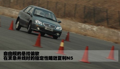 相對于夏利N5和新羚羊,自由艦在緊急制動時的點(diǎn)頭現(xiàn)象比較嚴(yán)重,駕駛員在車內(nèi)會有明顯“下扎”的感覺。在同等速度下,自由艦較重的車身會帶來更多的慣性,使制動距離相對較長。
