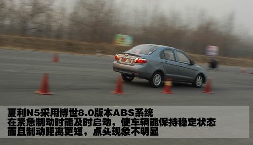 最后進(jìn)行的是緊急制動項(xiàng)目,主要考核車輛在緊急制動時表現(xiàn)出的穩(wěn)定性,以及車輛剎車的有效距離。由于緊急制動時,三款測試車輛的時速各不相同,所以結(jié)果也會有所差別。夏利N5測試時的時速比較高,達(dá)到了近90km/h的速度,但這款車的制動距離仍然保持在可控范圍之內(nèi),而且點(diǎn)頭現(xiàn)象也并不明顯。另外,夏利N5配備的博世8.0版本ABS系統(tǒng),在緊急制動時能及時啟動,使車身保持在穩(wěn)定狀態(tài)。