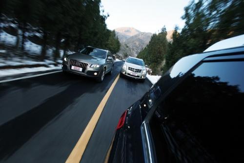 所有4款車都配備了3.0升以上的V6發(fā)動機(jī),這意味著所有4位選手理論上都擁有不錯的動力表現(xiàn)。其中XC60還配備了一套雙渦輪增壓裝置。所以沃爾沃在力量方面占有先天優(yōu)勢。雖然280馬力最大功率并沒有比奔馳和奧迪領(lǐng)先多少(Q5為270馬力,GLK則是272馬力),但從1500轉(zhuǎn)一直能維持到4800轉(zhuǎn)的400牛·米最大扭矩?zé)o疑讓它的中段加速力顯得尤其突出。寬泛的扭矩輸出帶還掩蓋了6速自動變速器反應(yīng)欠敏捷的缺陷。但即使如此,變速器在普通模式下完成降檔提速的頓挫依然有點(diǎn)兒明顯。所以在城市高速路上跟著SRX一路殺向拍攝地點(diǎn)時,我一直都保持在手動模式。將速度維持在60-120之間,我需要做的只是在響應(yīng)敏捷的4檔和5檔之間來回切換,巨大的低轉(zhuǎn)扭矩讓提速變得很容易,所以在那些按常理需要使用3檔的地方也可以維持在4檔,稍微多給一點(diǎn)兒油,問題就解決了。